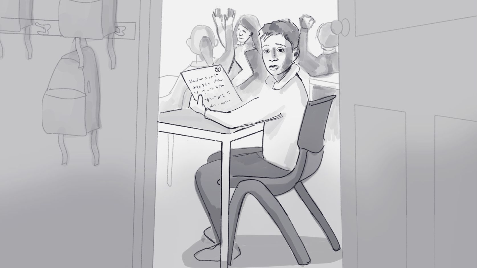 We’re looking in on this boy’s life, and capturing this moment in his day when he receives his test results and he realises, even though he’s trying so hard, he’s falling behind his classmates, and his dreams are slipping away.
