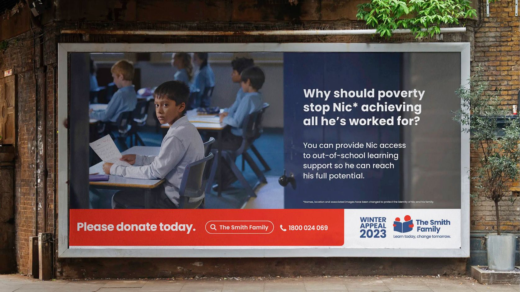 Just by getting in so close and changing perspective, the level of engagement you get from looking at this image is increased. The results spoke for themselves: this was The Smith Family’s most successful Winter Appeal to date. Which means they can reach even more children and help reduce educational inequality in Australia.