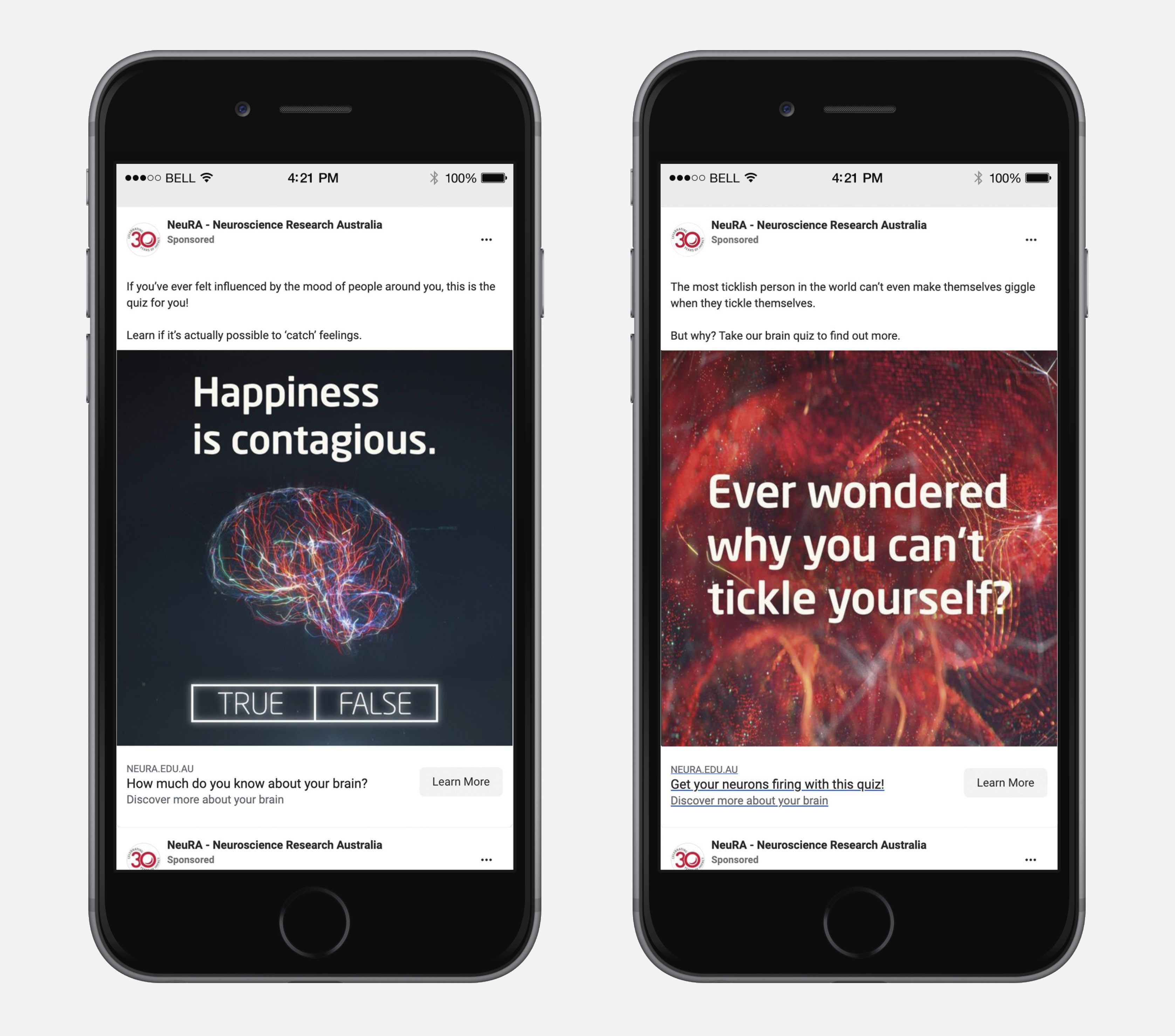 To heighten engagement throughout the customer journey, every touchpoint – from the quiz to the landing page – was a carefully crafted step towards conversion. This visually and intellectually stimulating narrative not only informed people about NeuRA’s work, but also primed them for a deeper conversation about becoming a Discovery Partner.