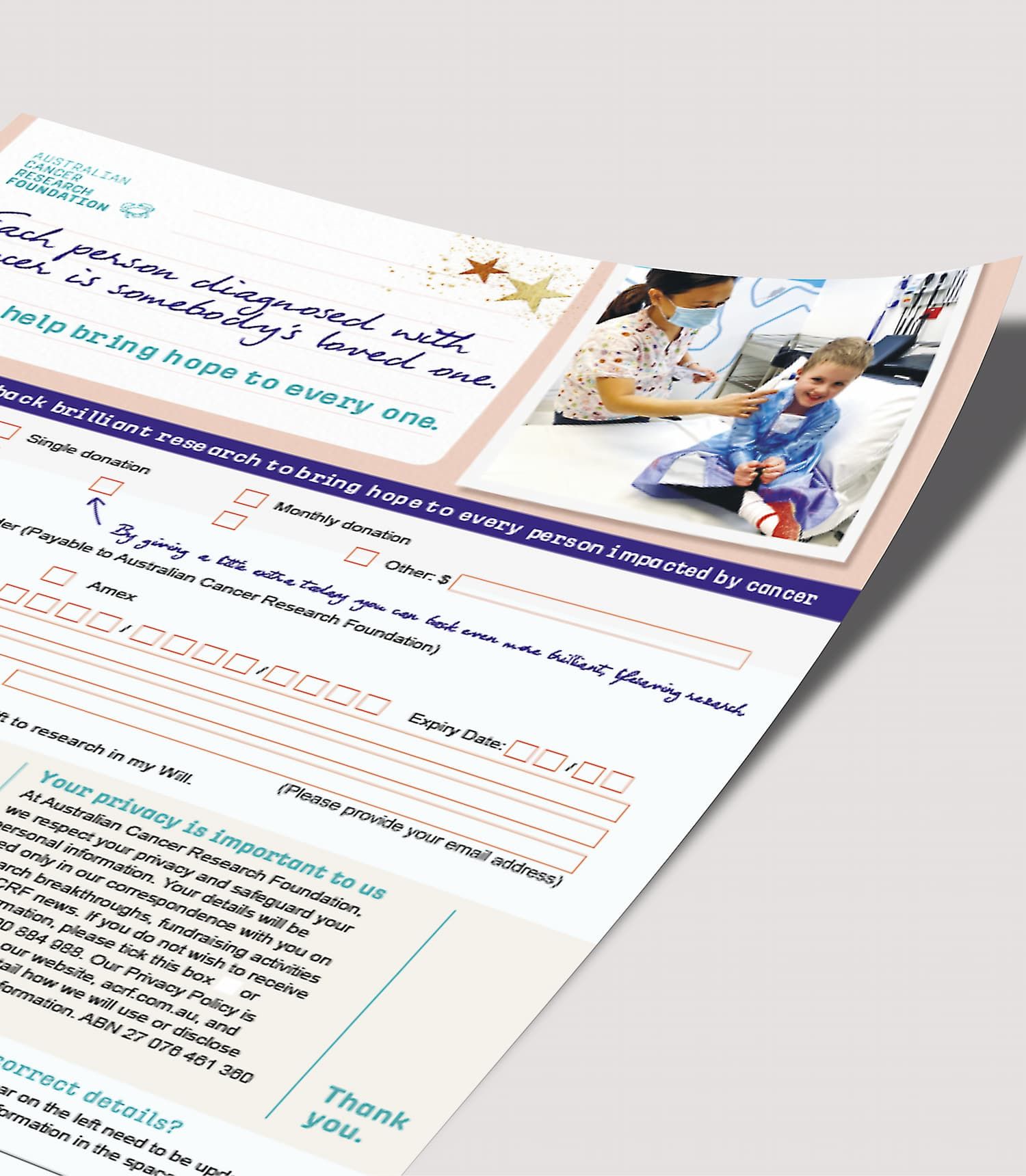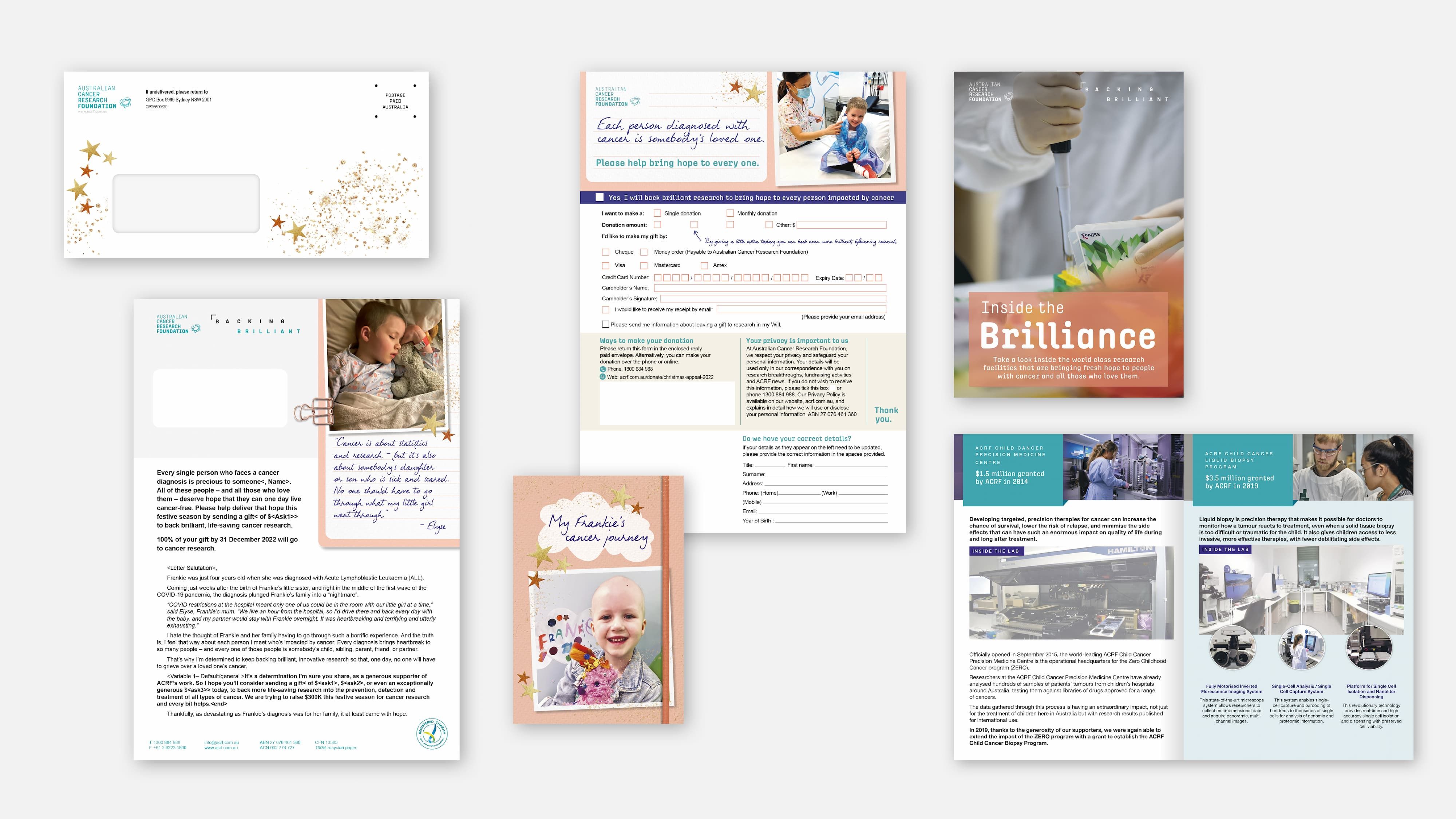 We developed a Christmas Appeal concept that captured the sparkling personality of their little case study, Frankie – whilst also showcasing their pioneering research in a new and even more engaging way. Throughout the pack, we emphasised that every single person diagnosed with cancer is as precious as Frankie is to her mum and dad, showing the vital human impact of every research development. For their valuable mid-donor segment, ACRF asked us to help them build stronger relationships. We responded with a highly informative, personalised approach, to draw the audience in deeper and demonstrate ACRF’s gratitude for their support.