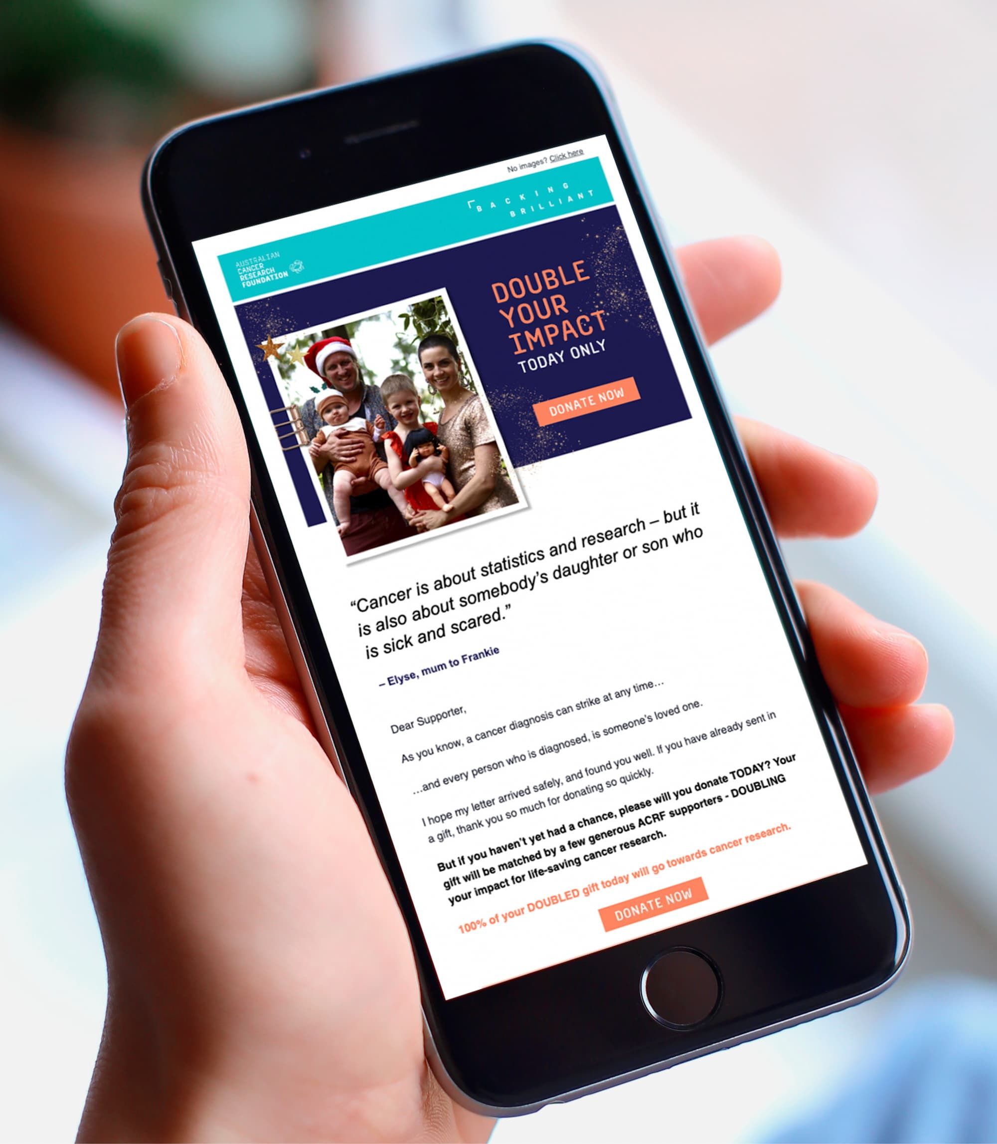 Recognising the value of an integrated, multi-channel approach with consistent design and messaging across all touchpoints, ACRF engaged Tone to craft a Christmas Appeal that spanned from direct mail to digital. This holistic, multi-channel approach helped the appeal to achieve a strong income, tripling ACRF’s matched giving day income target!