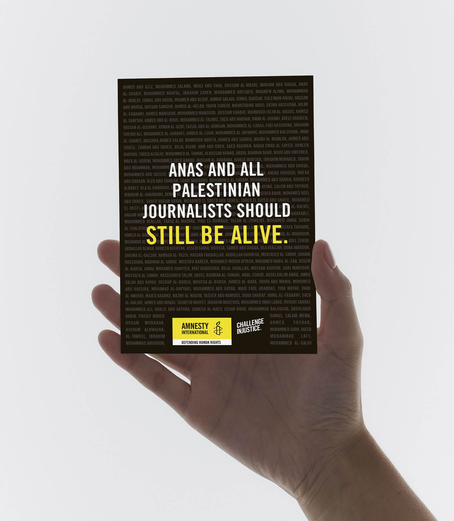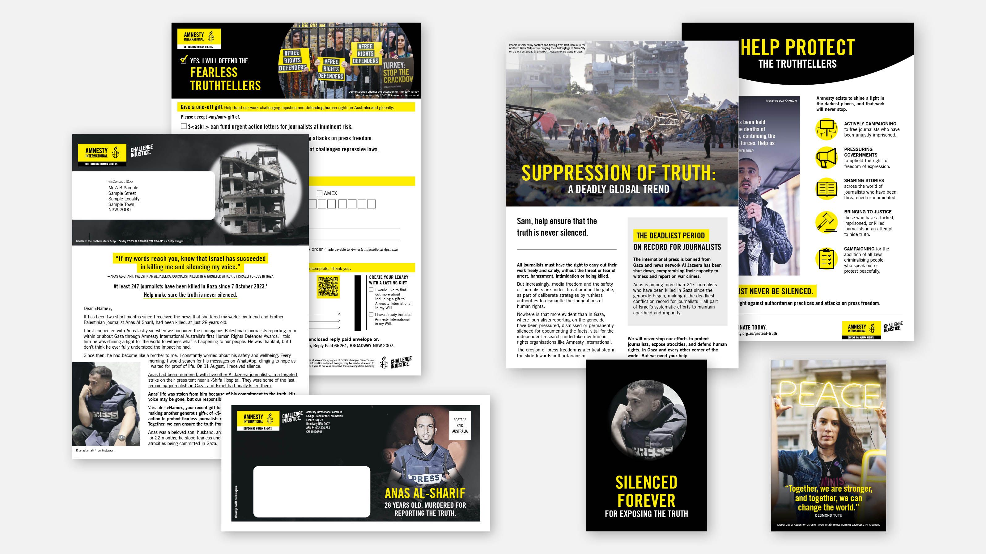 The story we were telling became infinitely more challenging when Anas Al-Sharif was killed during campaign development. As a team we were determined to tell his story with sensitivity. The reason he died was the reason we were advocating in the first place. It meant so much to us to be part of creating powerful design that told his story.