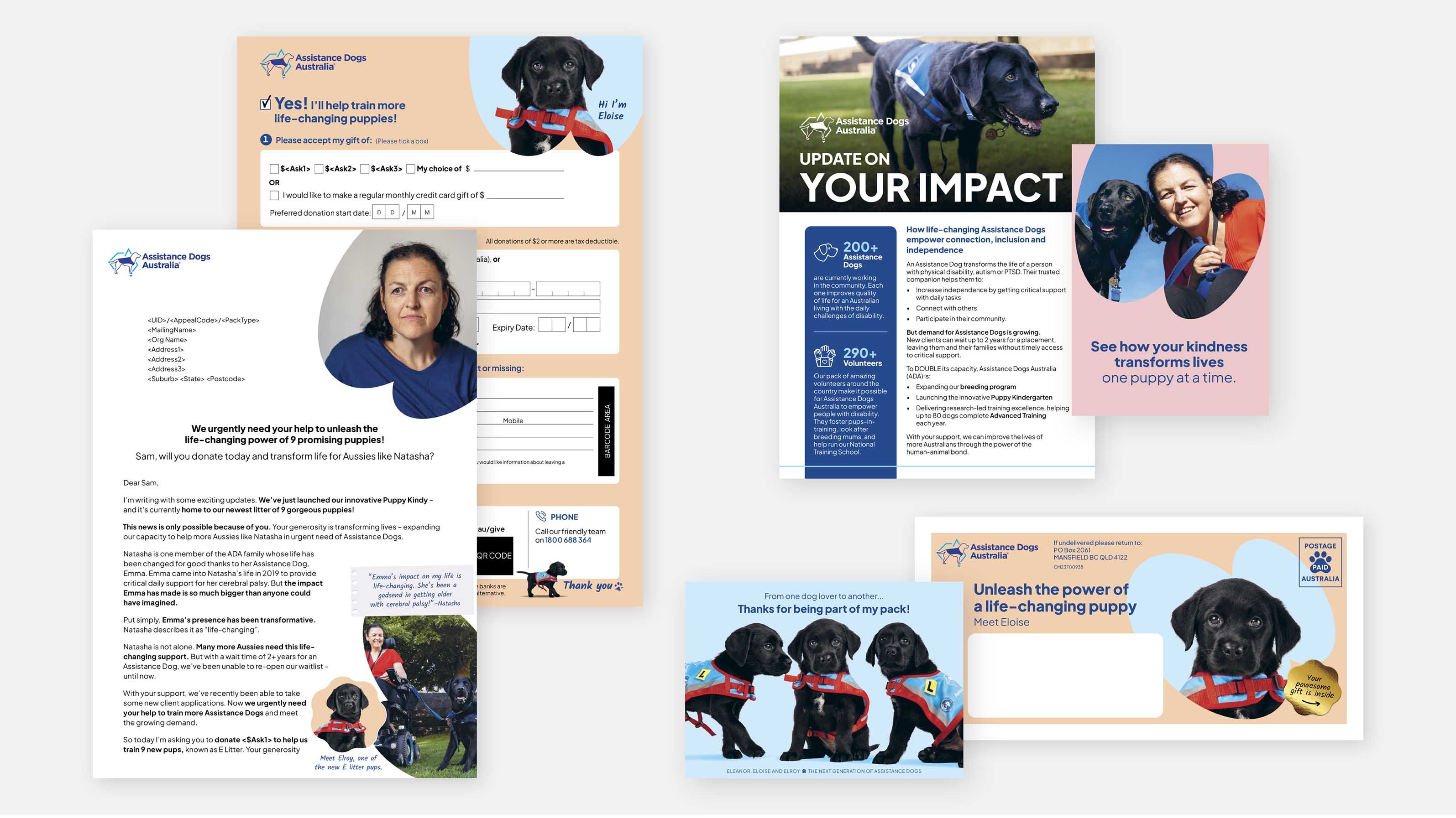 For their end of financial year campaign, Assistance Dogs Australia’s donors were invited to direct donations to help train more puppies! Our dog-loving designers and copywriters were on the job.