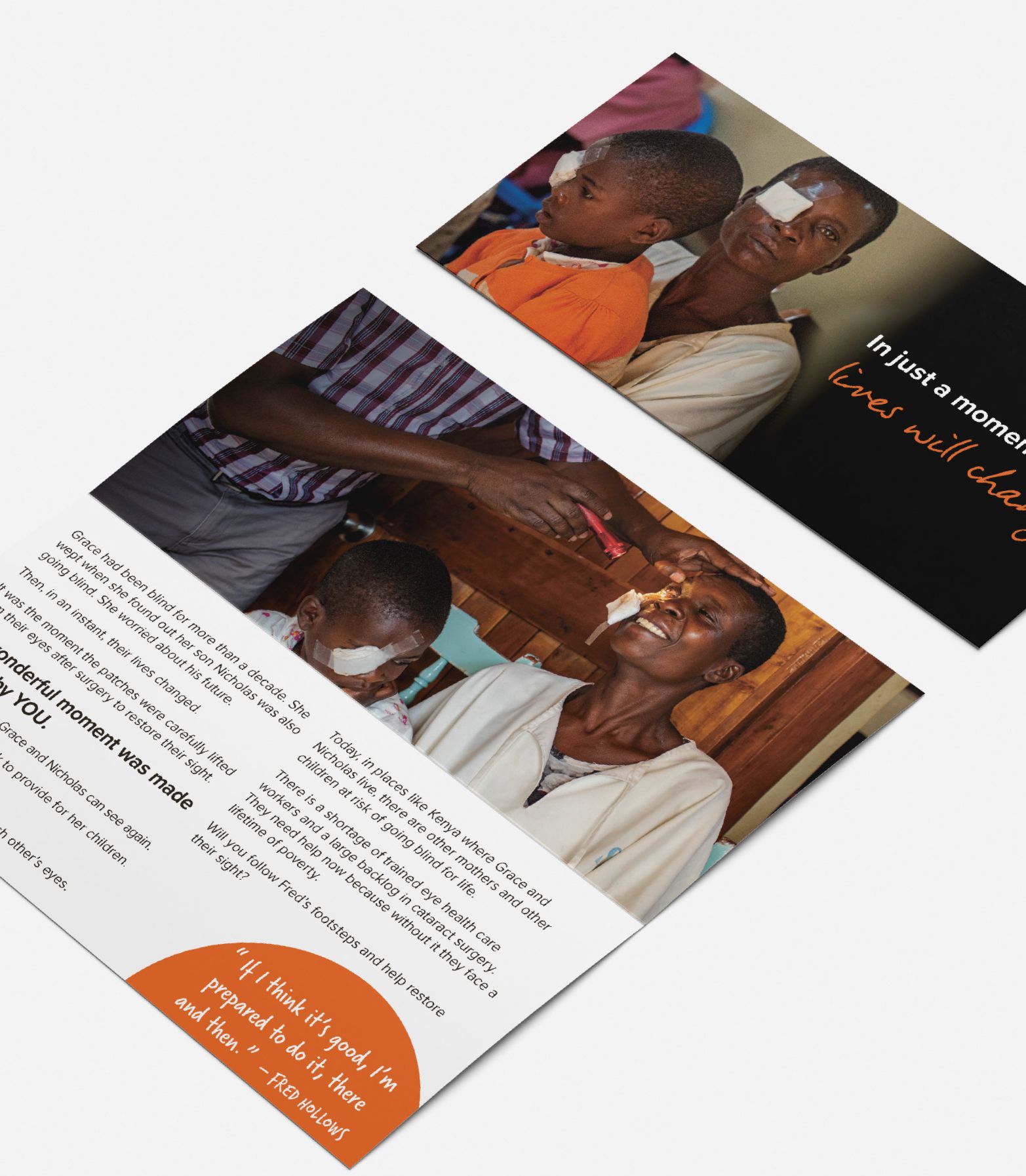 For the 2021 Tax Appeal, we shone a spotlight on the tragedy of childhood blindness. We told the story of Nicholas and Grace, a mother and son who were both blind. Across the multi-wave appeal, we illustrated Grace’s valiant efforts to help her son. We gave Australian donors a wonderful offer: to transform two lives with a single act of their own grace. As Fred used to say, “I’m an optimist, always, that the world can be a better place.”
