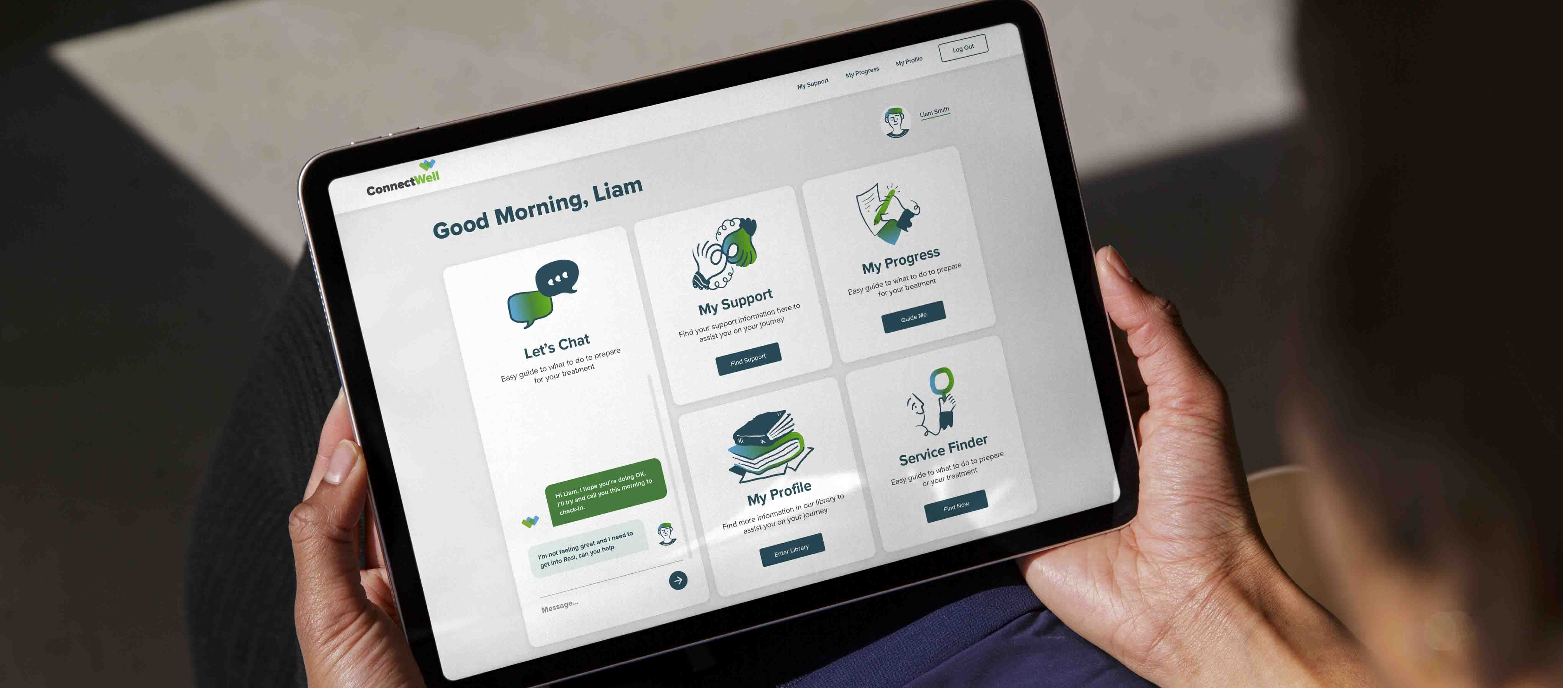 The portal we designed lets clients access resources, support and referrals – whenever and wherever they are. Our work supported a sustainable future for Lives Lived Well, with clients at the centre.